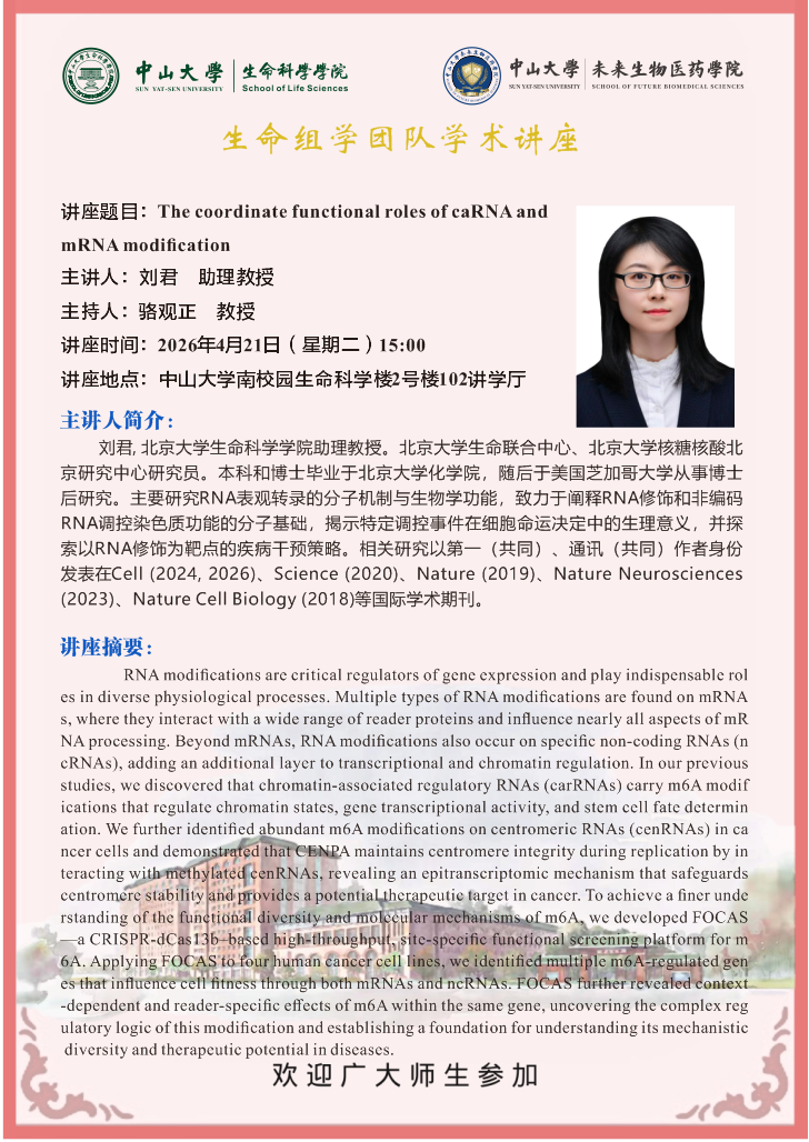 导航痕迹 亚洲av-十大亚洲AV平台 2026年4月21日生命组学团队讲座:The coordinate functional roles of caRNA and mRNA modification 扫描此二维码分享 2026年4月21日生命组学团队讲座:The coordinate functional roles of caRNA and mRNA modification 发布人:李晶 发布日期:2026-04-14 活动时间 2026年04月21日 15:00 - 2026年04月21日 17:00