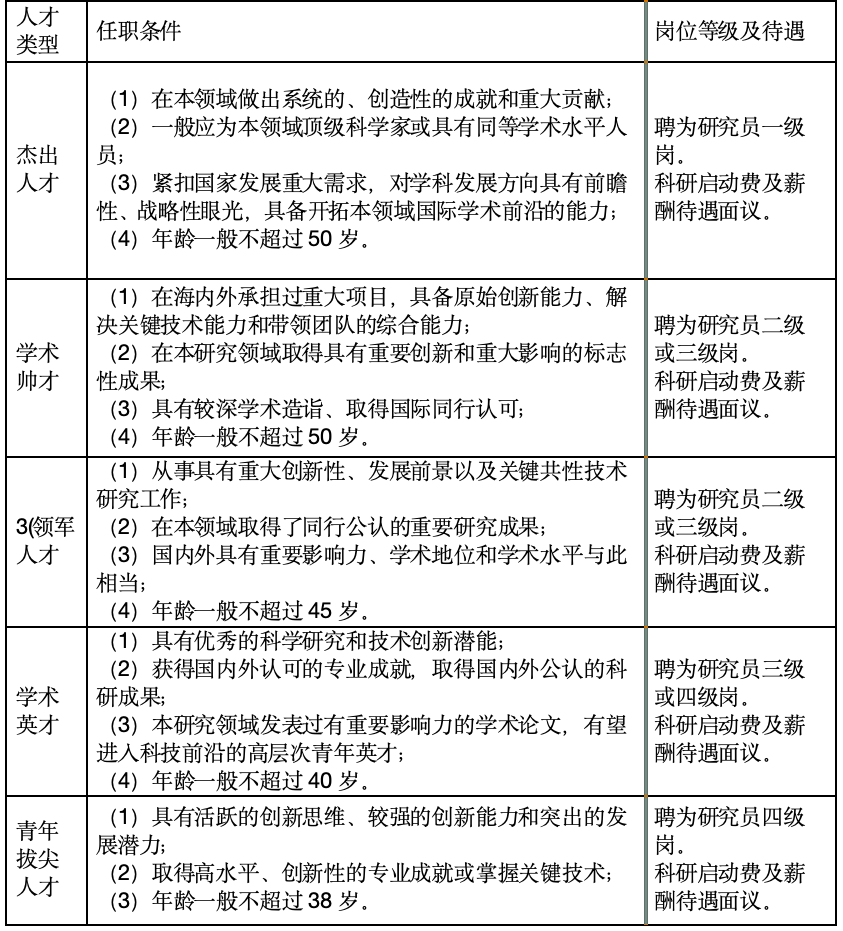 主要包括杰出人才、学术帅才、领军人才、学术英才、青年拔尖人才。