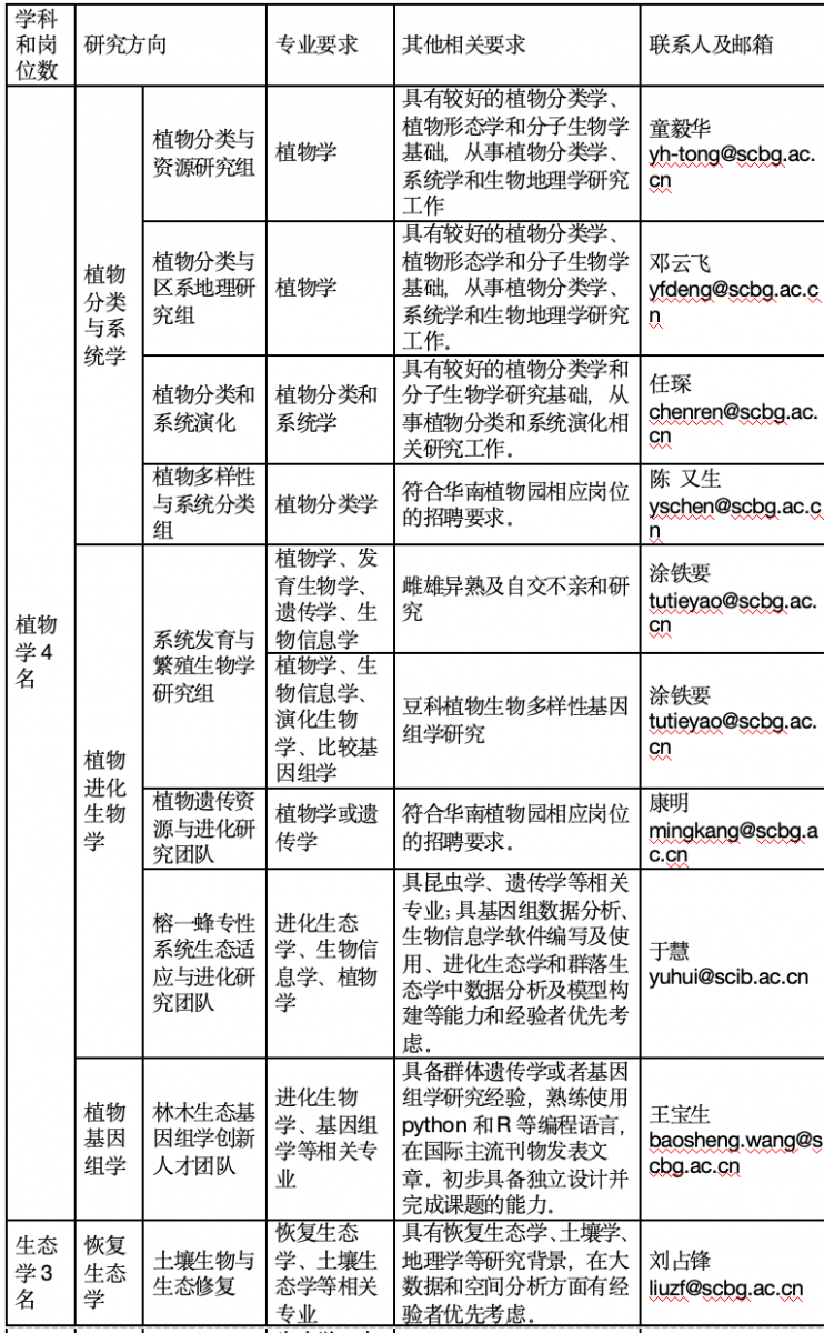 专业要求:生物学、植物学、生命科学等