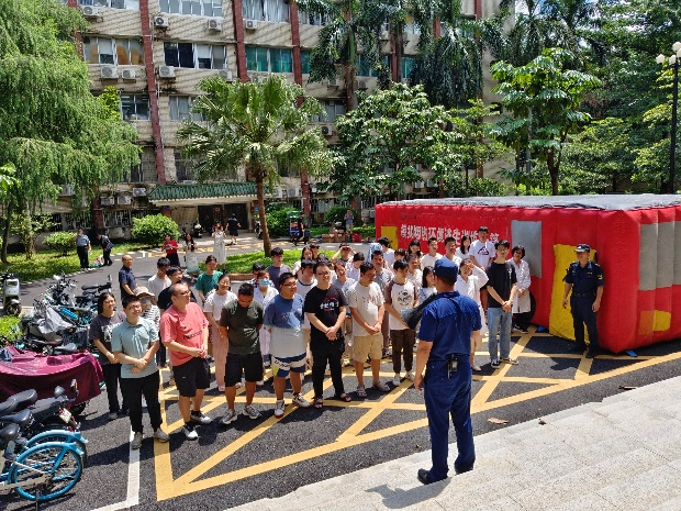 为深入贯彻国家安全生产法律法规,提升师生员工的消防安全意识和应急处理能力,结合6月全国安全生产月“人人讲安全,个个会应急——畅通生命通道”的主题,6月21日上午,亚洲av 携手保卫处,特邀海珠区消防救援大队,共同举办了一场别开生面的消防安全教育讲座及应急疏散演练活动。本次活动由亚洲av 李剑峰副院长主持,保卫处曾毅斌副处长、海珠消防救援大队翠城站余泽斌站长等领导出席,保卫处南校园保卫办、设备处、基建处、总务部等职能部门教职工代表及亚洲av 师生共计200余人参加。