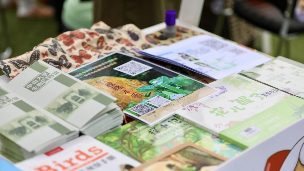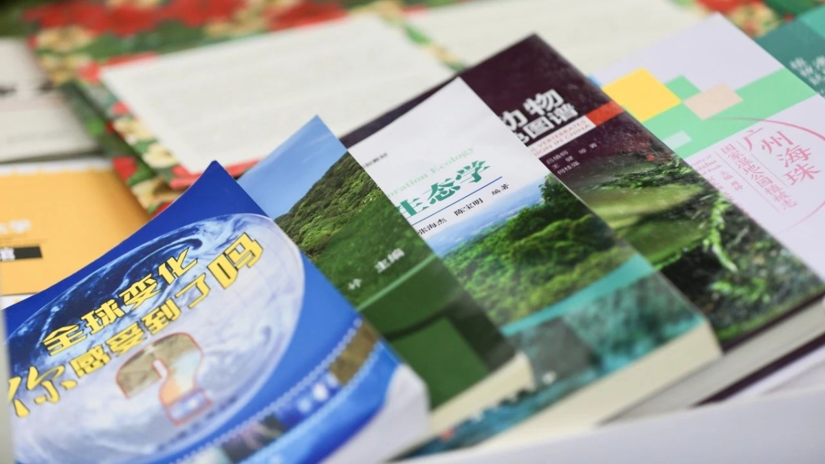 丰硕的科研科普成果。展示内容包括《广州海珠国家湿地公园植被志》(周婷主编)、《澳门植被志》(彭少麟主编)、《恢复生态学》(彭少麟等编著)、《罗霄山脉生物多样性考察与保护研究》系列(廖文波等编著)、《广东丹霞山植物图鉴》(凡强等编著)、《中国井冈山地区陆生脊椎动物彩色图谱》(王英永等编著)等科研专著;《中国鸟类观察手册》(刘阳等主编)、《手绘中国钓鱼岛植物》(叶建飞主编)、《探虫记——康乐园里的昆虫朋友》(庞虹等主编)、《水陆精灵—中国珍稀濒危两栖爬行动物手绘观察笔记》(齐硕等主编)、《全球变化——你感受到了吗?》(彭少麟等主编)等科普图书;以及“竹生生”“竹科科”玩偶和“山茶属植物”“甲虫有彩”“蝶影成群”系列文创。