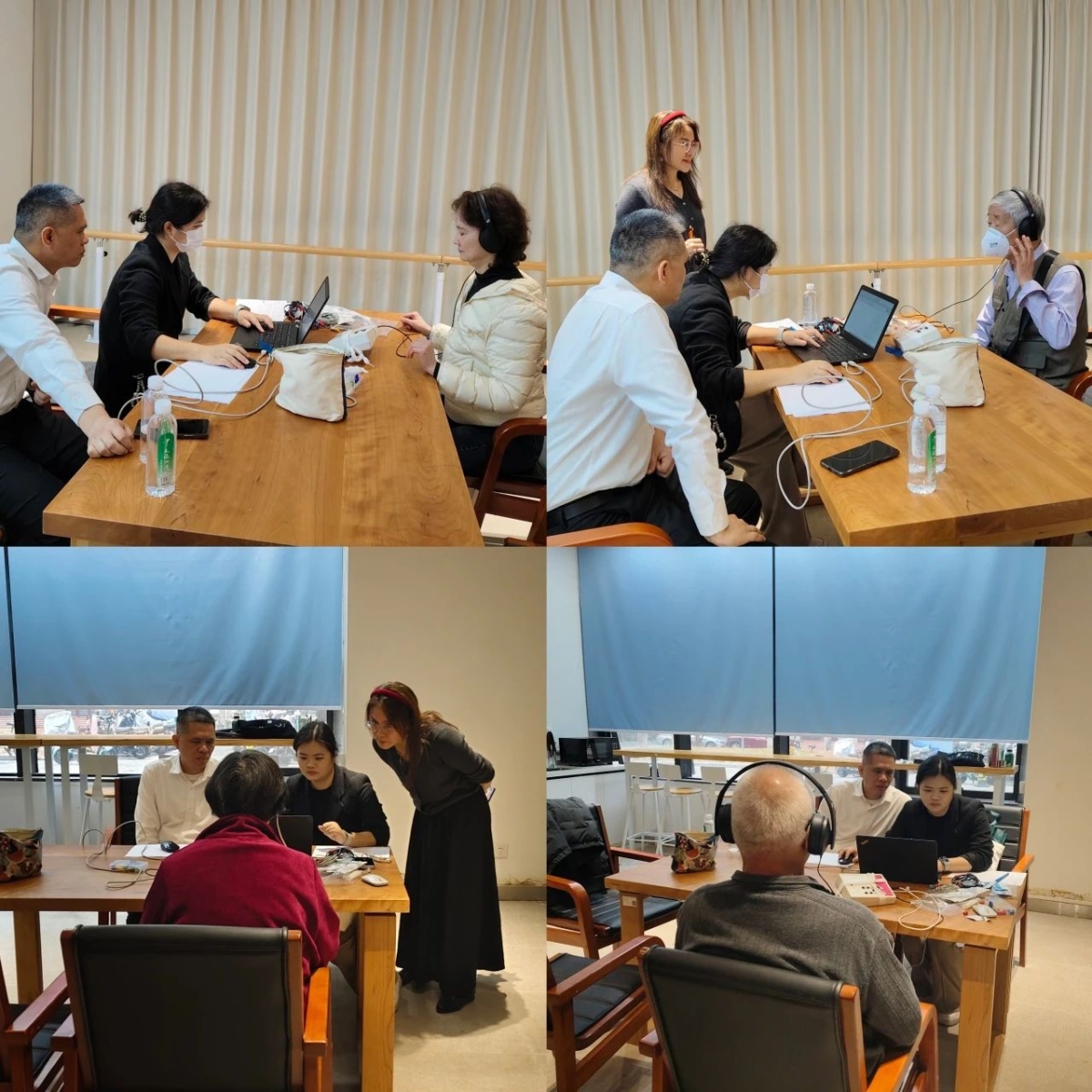 1号楼教职工之家举办。现场设置专业检测区,黄伟洛校友带领团队运用先进的听力检测设备,为近30位老师进行听力阈值测试等筛查,并针对不同听力状况提供个性化护耳建议。