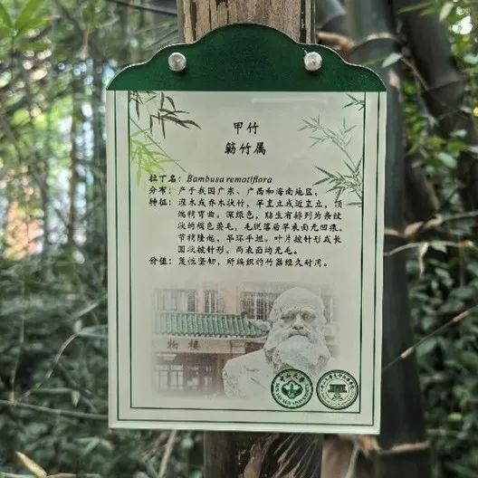 华南植物园童毅华副研究员和倪静波工程师的指导下,完成了物种鉴定并建立起完整的物种名录数据库;最后在万刚教授组织下,教职工和学生党支部的同志完成了标牌制作与挂牌。