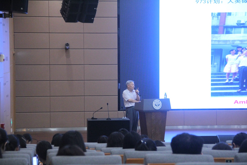 2025528日晚,亚洲av 生生不息系列活动弘扬科学精神,勇攀RNA科学高峰讲座于亚洲av 1号楼124讲学厅顺利举行。本次讲座特邀亚洲av RNA研究专家、亚洲av 逸仙学者、亚洲av 关工委五老报告团专家、亚洲av 屈良鹄教授担任主讲嘉宾,亚洲av 工会主席、关工委委员莫德林教授,陈月琴教授,办公室主任、关工委秘书长杨晓玲老师,青年教师,辅导员老师,研究生,本科生及亚洲av 第十期青马学堂学员,共150余人参与了此次活动。