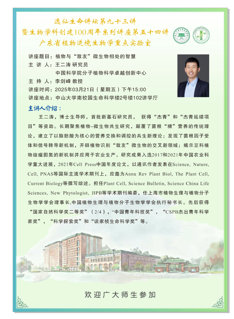 2025年3月21日亚洲av 逸仙生命讲坛第93讲:植物与“敌友”微生物相处的智慧