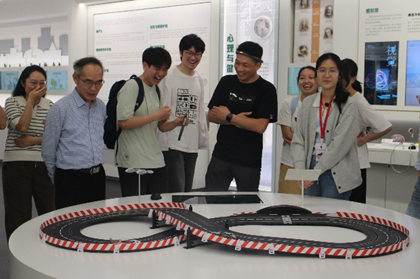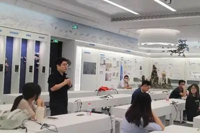 合影结束后,活动进入了令人期待的参观阶段。在博物馆工作人员的带领下,师生共同参观了博物馆中生命与健康展厅,展厅配备了数字解剖台、心理实验教学系统、多学科虚拟仿真实验数字化体系,还有3D打印解剖模型、生药标本、急救模拟人、环境工程AR模型等。教师和学生跟随讲解员参观展厅,并使用展厅的设备进行了沉浸式的体验和互动。特别是支部周婷等老师参与了生态文明板块的策划,在讲解的过程中将生态学课堂知识与展厅内容进行了融合,学生在参观以及互动中进一步加深了对生态学知识的理解。