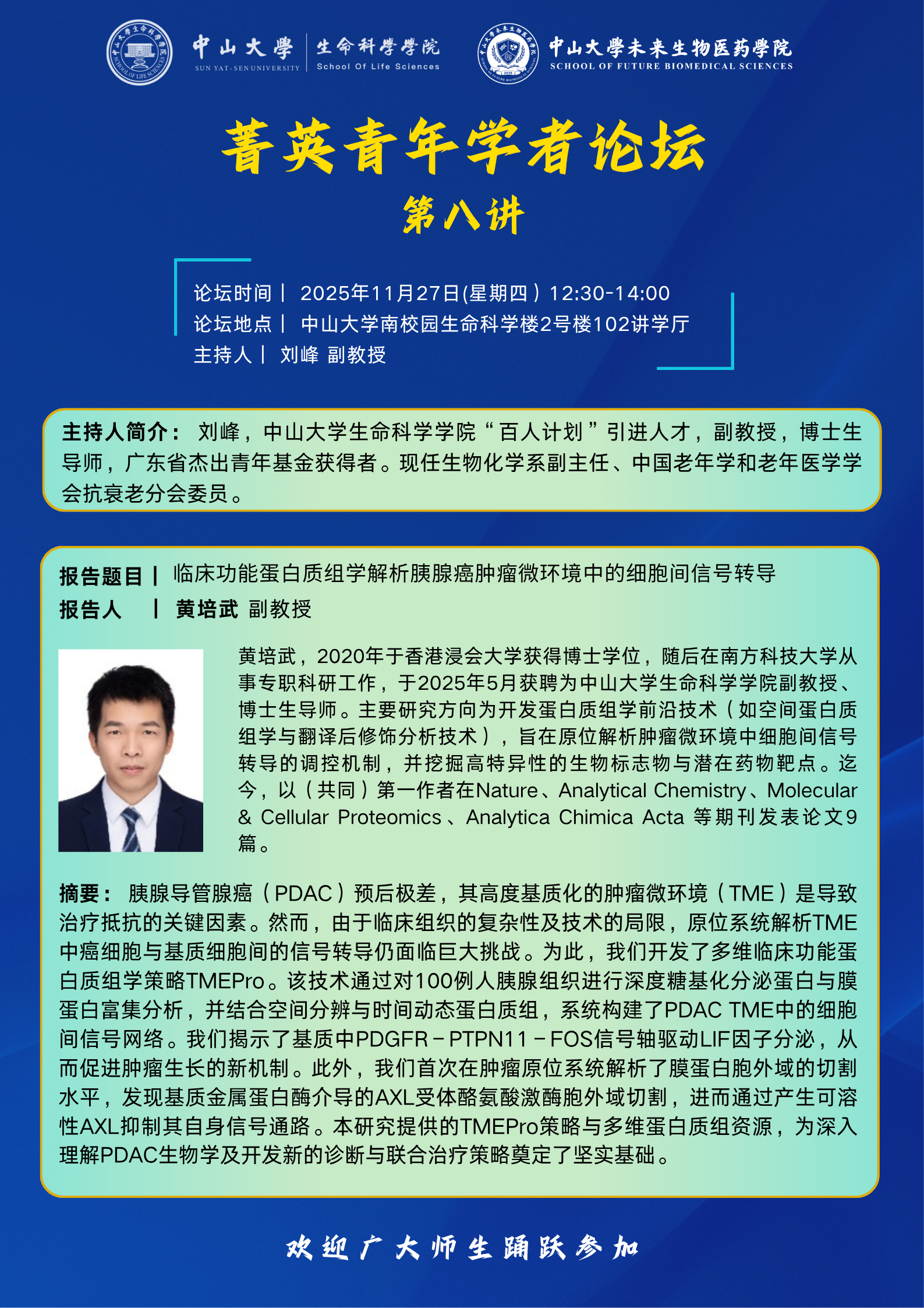 2025年11月27日菁英青年学者论坛第8讲:临床功能蛋白质组学解析胰腺癌肿瘤微环境中的细胞间信号转导